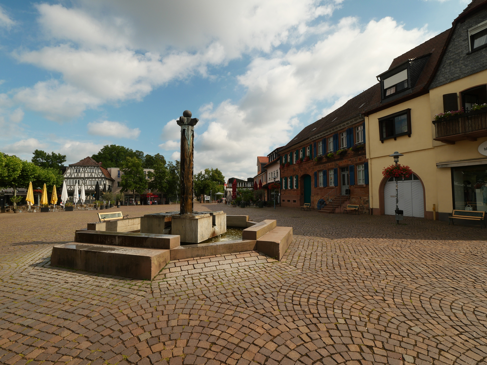 Der Marktplatz und die angrenzenden Gassen bilden seit dem 12. Jahrhundert das Zentrum der Stadt. Besucher der Deutschen Fachwerkstraße, der auch Dieburg angehört, entdecken hier Fachwerkhäuser mit aufwändigen Fensterkonstruktionen und dekorativem Schmuckfachwerk.
