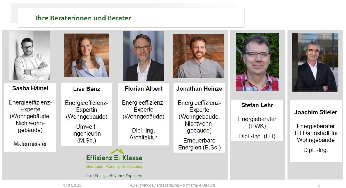 Folgende Energieberatende führen die Vor-Ort-Besuche im Auftrag der Stadt Dieburg durch: