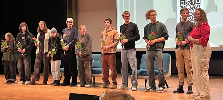 Gezeigt wurden Kurzfilme und Soundübungen von Studierenden der unterschiedlichen Studiengänge des Mediencampus, die eindrucksvoll die Bandbreite filmischer Ausdrucksformen widerspiegelten – mit den Titeln: „Wolf“ (Animation and Game), „Coward“, „Ad acta“ (beide Motion Pictures) „Mach mal Backflip“ (Sound, Music and Production), „Drowning“ (Animation and Game) sowie zwei Creative Sounddesign-Übungen (Sound, Music and Production). Der Preis für den filmischen Publikumsliebling ging in diesem Jahr an die beiden Filme „Drowning“ und „Ad acta“.