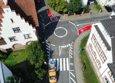 Sicherer Schulweg: Stadt Dieburg testet Mini-Kreisverkehr