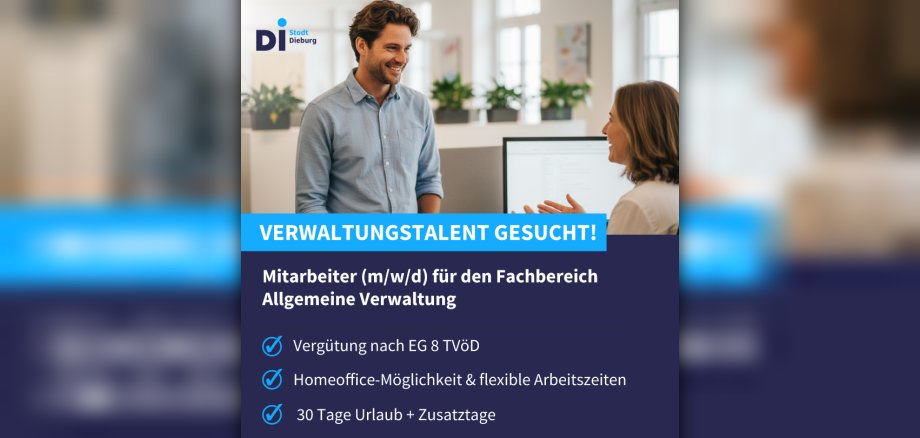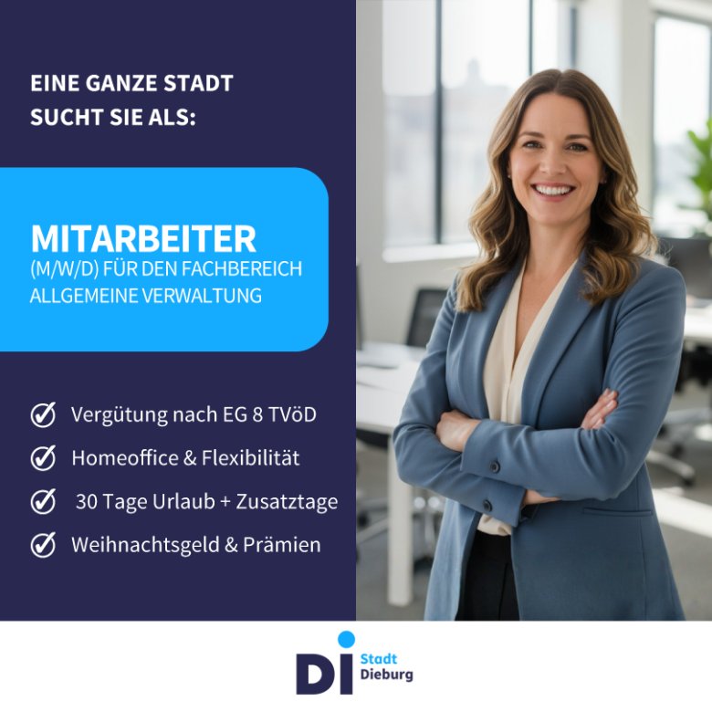 Die Stadt Dieburg suchen zum nächstmöglichen Zeitpunkt für unseren Fachbereich Allgemeine Verwaltung