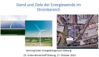 Das bestätigte auch Henning Eckel von der Dieburger Bürgerinitiative Energiebürgertisch, der in seinem Vortrag das „energiepolitische Zieldreieck“ präsentierte, das aus den drei Komponenten Versorgungssicherheit, Wirtschaftlichkeit und Umweltverträglichkeit besteht. „Lange war die Versorgungssicherheit nicht so präsent, denn der Strom kam ja aus der Steckdose“, gab Eckel zu bedenken. Doch mit den Anforderungen der Energiewende und der aktuellen Lage auf den Energiemärkten sei nichts mehr selbstverständlich, so dass heute alle Seiten des Dreiecks gleichermaßen im Fokus seien. Mit Zahlen zu Treibhausemmissionen und Klimaschutzzielen verdeutlichte Eckel im Anschluss, wie die Zeit drängt. „Der Klimawandel und die Energiewende stellen uns vor Riesen-Herausforderungen“, machte er klar. Weshalb auch jedes Unternehmen prüfen sollte, ob eine PV-Anlage auf dem Firmengebäude in Frage kommt und damit ein Beitrag zur Energiewende geleistet werden könnte. Aktuell gibt es in Dieburg rund 440 Photovoltaikanlagen mit einer installierten Gesamtleistung von 13 Megawatt – ca. die Hälfte davon entfällt auf die Dachanlage der Firma Fiege. Eckels Fazit: „Wir haben noch jede Menge Potenzial in Dieburg, das sollten wir nutzen.“