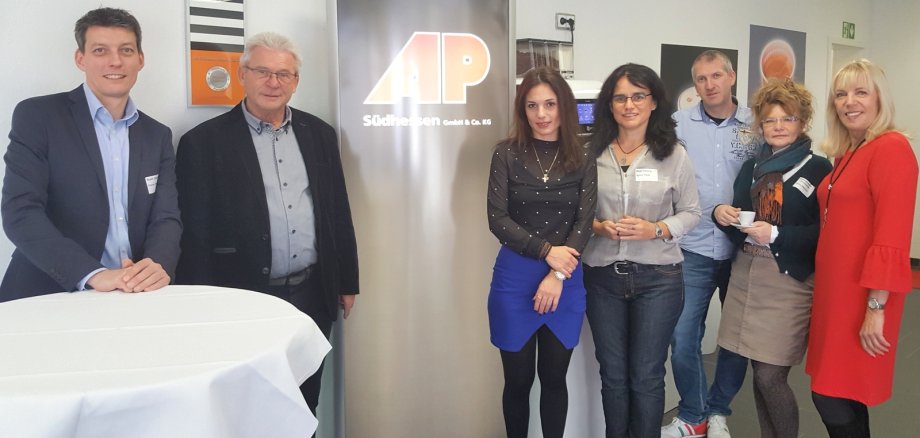 Mit einem gut geschäumten Latte Macchiato wurden die Gäste des städtischen UnternehmerTreffs bei der Firma „AP Südhessen GmbH & Co.KG“, von den Geschäftsführern Gudrun und Robert Krämer, begrüßt. Bei einem kleinen Frühstück konnten die Teilnehmer am Sitz des Unternehmens in der August-Horch Straße 10 in Dieburg erfahren, wie es gelingt, Betrieben auf ihre individuellen Bedürfnisse zugeschnittene Versorgungsmöglichkeiten mit Heißgetränken und Snacks über Automaten anzubieten. Die AP Südhessen GmbH & Co.KG beschäftigt derzeit 8 Vollzeitkräfte im Service. Diese versorgen die Automaten teilweise täglich mit Waren und führen Reinigungs- und Pflegearbeiten durch. Das Einsatzgebiet erstreckt sich auf die Region von Wetzlar im Norden bis an die hessische Landesgrenze im Süden. Der technische Leiter, Herr Körner, kümmert sich mit 3 weiteren Mitarbeitern um die Instandhaltung und Wartung der Automaten. Die Produkte sind auf alle Zielgruppen angepasst. Neben den verschiedensten hochwertigen Kaffeeprodukten gibt es je nach Wunsch auch Angebote von kalorienreduzierten und laktosefreien Heißgetränken oder anderen Spezialitäten. Die persönliche Beratung und Betreuung der Kunden steht in dem von Gudrun und Robert Krämer seit über 2 Jahrzehnten geleiteten Unternehmen im Vordergrund. Das jüngste Projekt der AP Südhessen GmbH & Co.KG stellt das Unternehmen vor eine anspruchsvolle Aufgabe auf einem neuen Geschäftsfeld. So werden die Eheleute Krämer mit ihren Mitarbeitern ab Januar 2018 den Getränkeshop im Food Court des Innovation Centers der Merck KGaA in Darmstadt betreiben. „Für uns ist das eine komplett neue Herausforderung, die wir aber durch unseren gewohnten Dienstleistungsservice bewältigen werden“, so der künftige Geschäftsführer des Unternehmens, Karsten Krämer. Bürgermeister Frank Haus dankte den Gastgebern für den Einblick in die vielfältigen Angebote und Tätigkeiten des Unternehmens.
