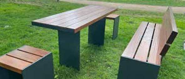 Bänke mit Tischen wurden im Fechenbachpark aufgestellt.