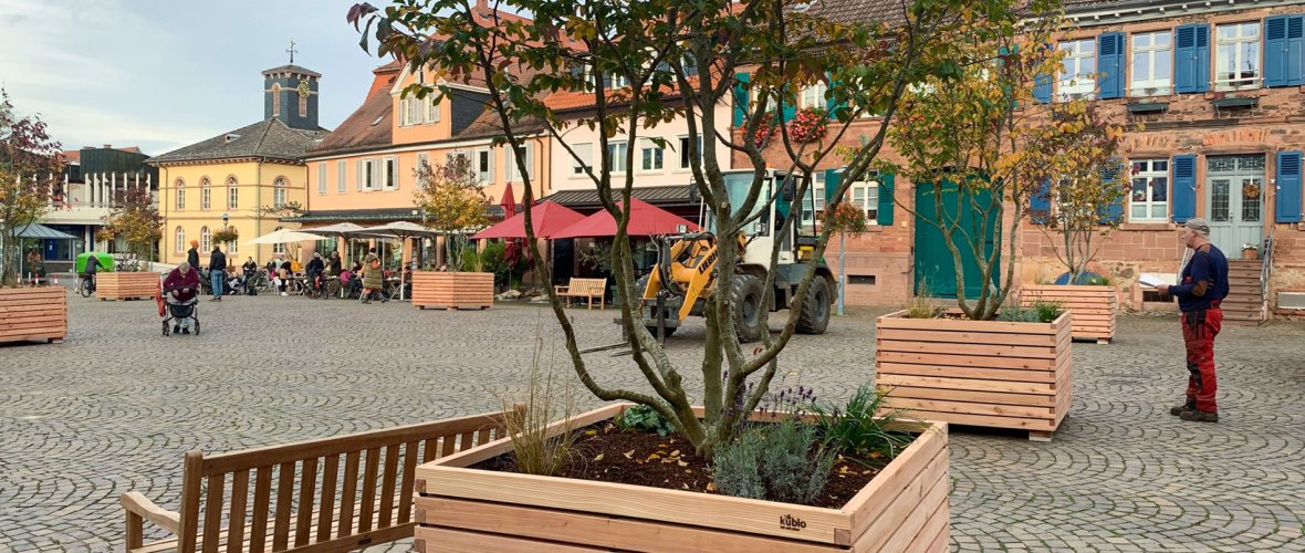 Fünf Platanen sorgen für mehr Schattenplätze auf dem Marktplatz.