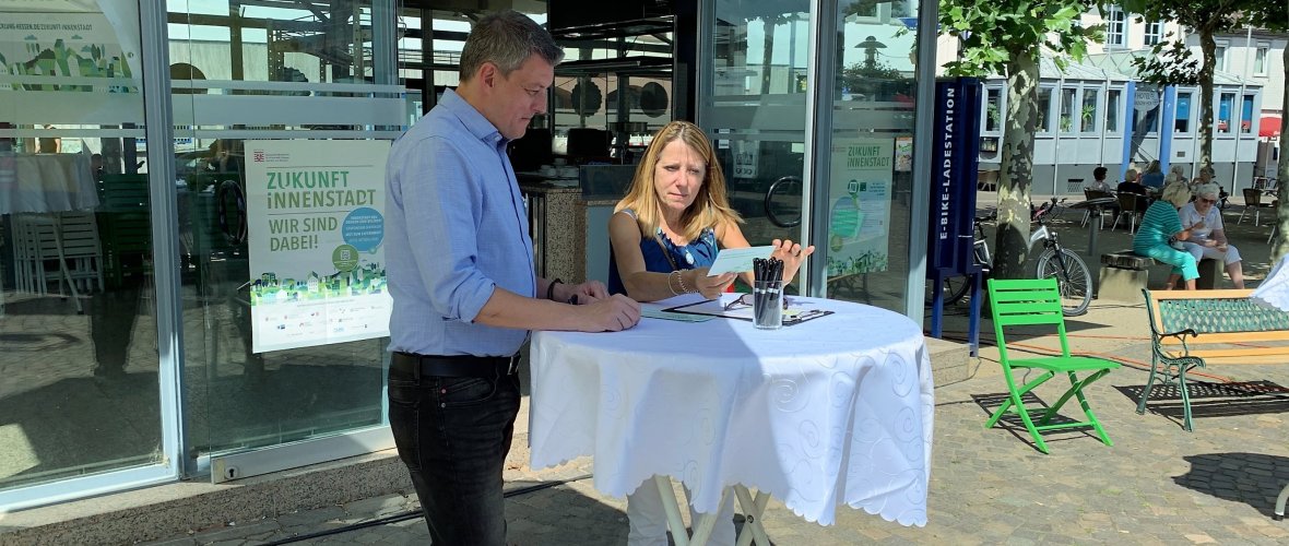 Im Zeitraum 11. bis 23. Juli 2022 haben 90 Dieburger Bürgerinnen und Bürger sowie Gäste aus umliegenden Gemeinden die Gelegenheit genutzt, Ideen für die weitere Entwicklung der Dieburger Innenstadt ins Projekt einzubringen. Insgesamt 280 Anregungen wurden im Rahmen der Aktion beigesteuert - entweder im persönlichen Austausch mit Vertretern des Projektteams im Mini-Café auf dem Marktplatz oder online über den „Anregungs- und Ereignismelder“ der Stadt Dieburg.